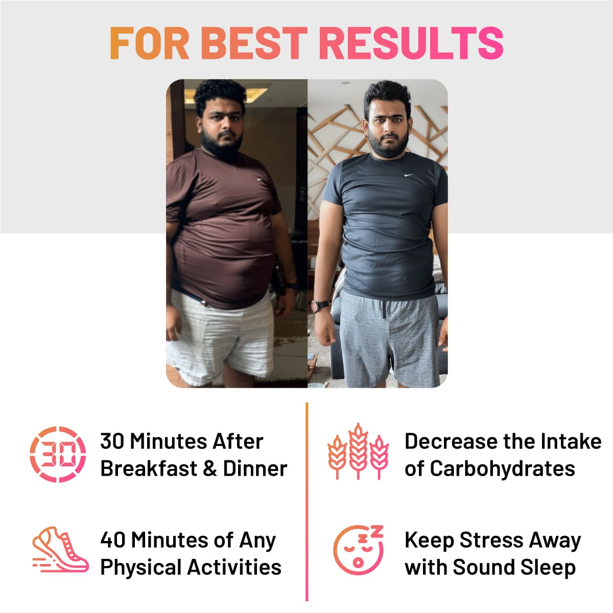 Achieve 3-4 kgs sustainable weight loss, promoting a balanced and fulfilling lifestyle.